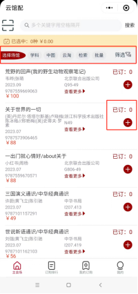 勾选图书,点击右侧【订购】即可将心仪图书加入购物车;