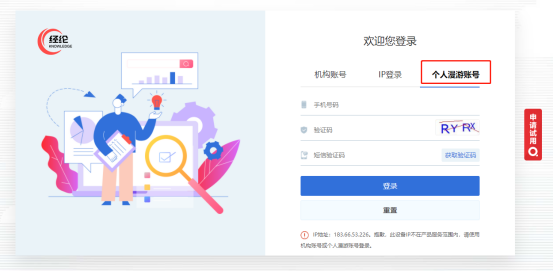校外访问:需先在校园内访问http://k.vipslib.com,注册个人漫游账号。在校外使用经纶时,登录个人账号即可。(注意:注册个人漫游账号时,需认证个人信息,请确保邮箱地址正确,后续文献传递的资源将直接发送至邮箱)