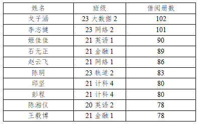 图书馆根据读者在2023年11月初至2024年10月底个人借阅册数评选出前10名的学生读者为“阅读之星”,予以表彰并颁发证书。