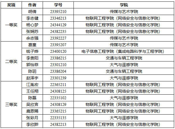 本次大赛共收到来自不同学院、不同专业的参赛作品二十余篇。经过专家评审,选拔出一等奖五名、二等奖六名、三等奖七名,现将获奖名单公布如下: