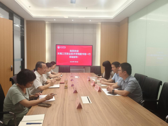 7月9日上午,无锡工艺职业技术学院图书馆馆长朱启家、副馆长赵华迪等一行来我校图书馆调研交流。我校图书馆(档案馆)馆长安杰、馆长助理胡颖文及图书馆部分工作人员参加了交流座谈会,会议由安杰主持。