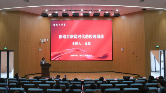 为加强文化引领,营造良好的书香校园文化氛围,4月23日下午,“锡院大讲堂”第一期在我校图书馆报告厅开讲。图书馆邀请了中国图书馆学会图书评论与阅读推广专业组主任、江苏省图书馆学会阅读推广委员会主任、南京邮电大学图书馆档案馆党总支书记钱军教授作为“锡院大讲堂”第一期的主讲人,做题为《移动互联网时代的校园阅读》的专题讲座。我校200余名师生代表参加,讲座由图书馆馆长助理胡颖文主持。
