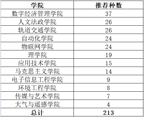 各学院推荐情况: