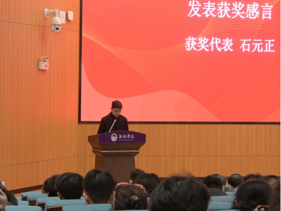 在颁奖环节,与会领导嘉宾分别为十项活动的获奖代表颁发证书并合影留念。“阅读之星”、数字经济与管理学院的石元正同学发表获奖感言,他分享自身对于阅读的思考见解,呼吁同学们把握韶华,享受阅读,敦品励学,饱读诗书,培育有理想、有担当、有涵养的青年气质。